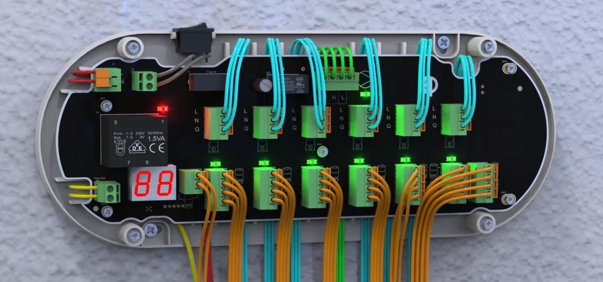 keylink terminal kutuları kollektörden beslenen yerden ısıtma tesisatlarında, oda termostatları ve aktüatörlerin emniyetli bir şekilde bağlanmasını sağlayan modüllerdir.