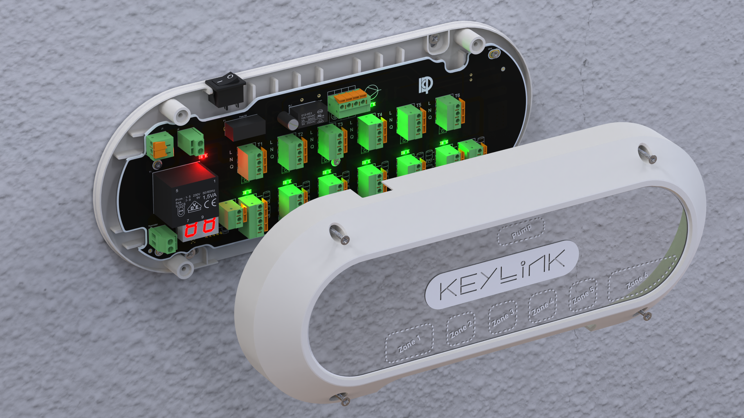 keylink smart plus module; it has all the features of the smart module. thanks to an under-screed temperature sensor in NTC type with IP67 protection class, the temperature of the system water can be displayed with the digital indicator on the card. when the energy from the thermostats is cut off, module provides control and turns off the pump as in the keylink smart module.